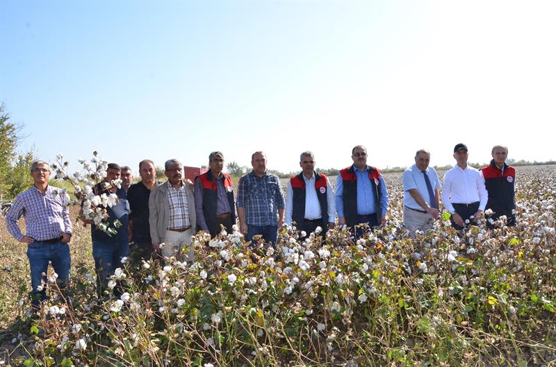 Pamuk hasadının ardından katılımcılar ve üreticiler ile birlikte Pamuk hasadı yapılan alanda hatıra fotoğrafı çekildiler.
