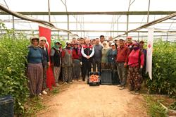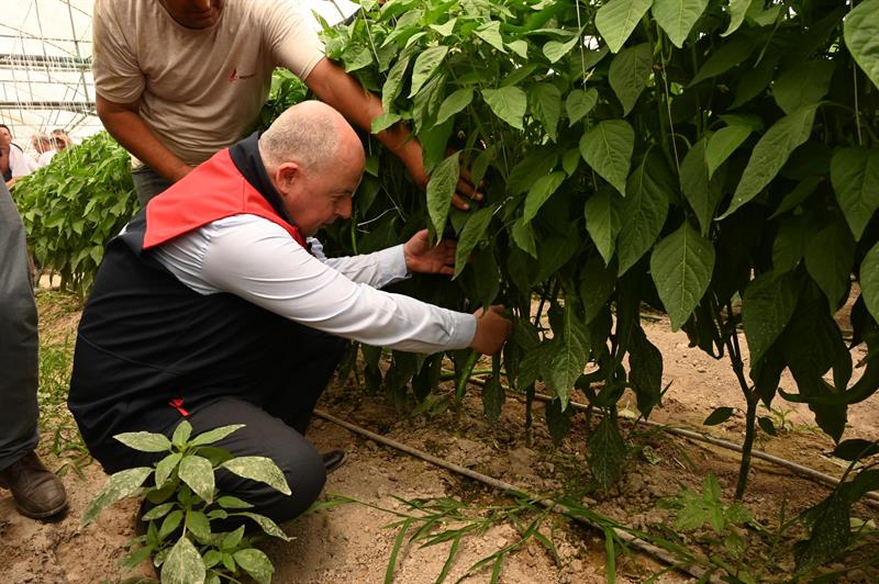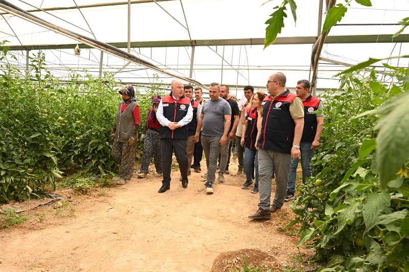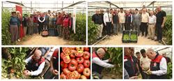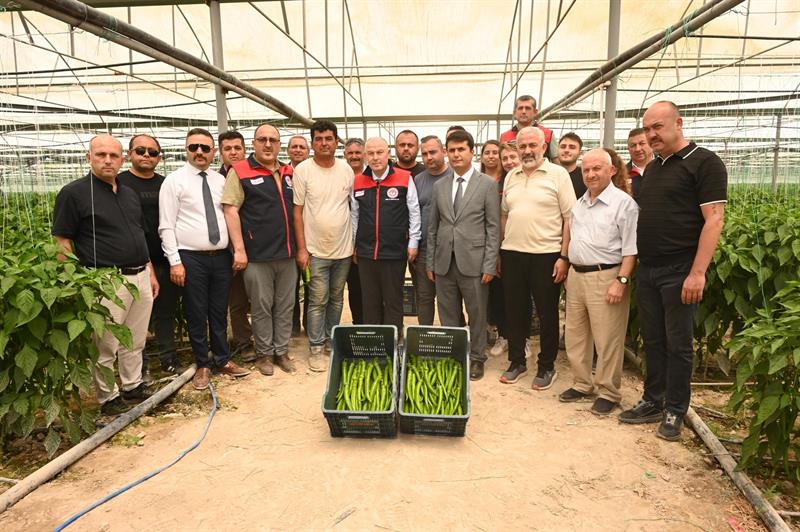 Ziyaret kapsamında, üretim yapılan 28 dekar biber ve 43 dekar domates seralarında ürün hasadına katıldı.
