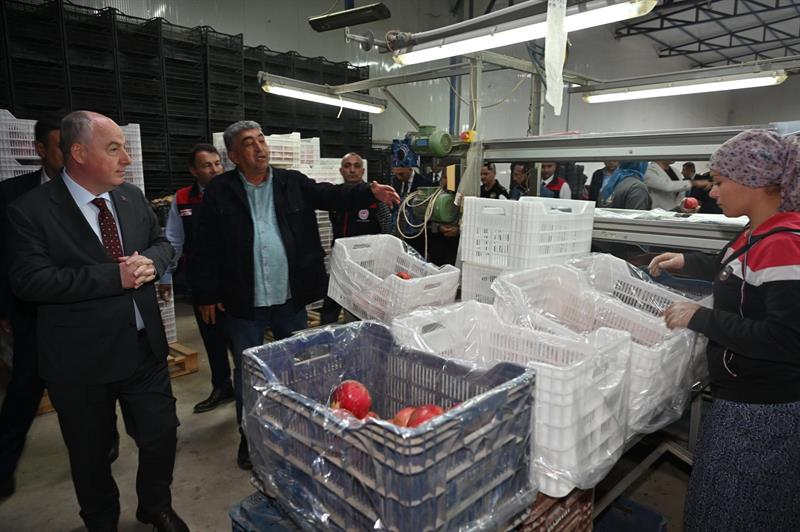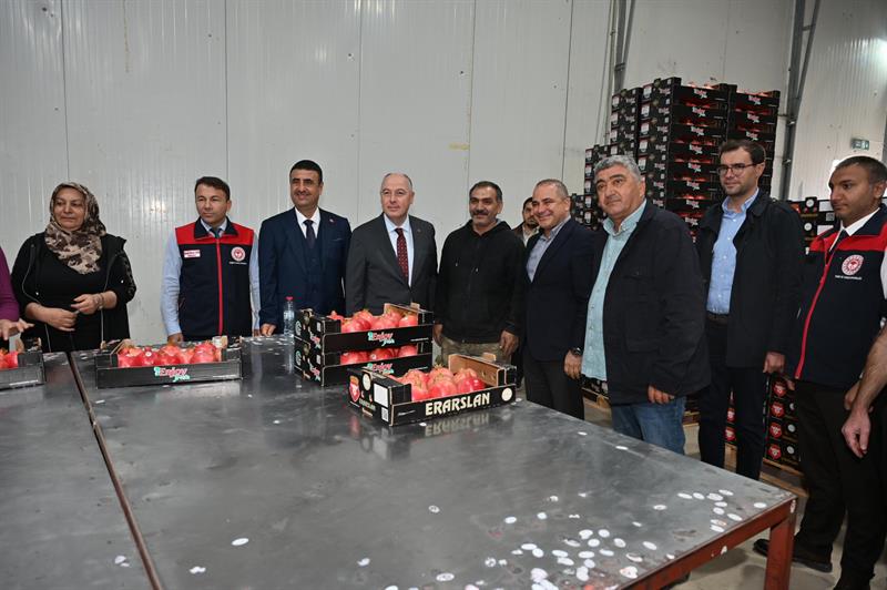 Nar üretim alanını yerinde inceleyen Denizli Valisi Sayın Ömer Faruk COŞKUN, üretim süreci hakkında yetkililerden bilgi alarak bugün gerçekleştirilen ihracatın ve Nar hasadının bütün çiftçilerimize hayırlı ve bereketli olmasını diledi. Ziyarette; üretim yöntemleri, pazarlama stratejileri ve ihracat süreçlerine dair değerlendirmeler yapıldı.