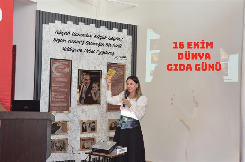 Etkinlikte, Gıda Yüksek Mühendisi Tuğba ATIŞ KARADUMAN tarafından öğrencilere ve öğretmenlere yönelik interaktif bir sunum gerçekleştirildi. Sunumda; Dünya Gıda Günü'nün anlamı, gıda güvenliği, güvenilir gıda üretimi ve tüketimi, gıda hakkı, yeterli ve dengeli beslenme ile gıda israfı gibi konular ele alındı.