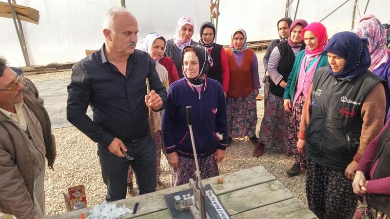 Eğitimde işçilere makine ile anaç ve kalemin hazırlanışı, dilcikli ingiliz aşısının nasıl yapılacağı, aşının bağlanması ve dikkat edilmesi gereken diğer konular hakkında bilgi verildi.